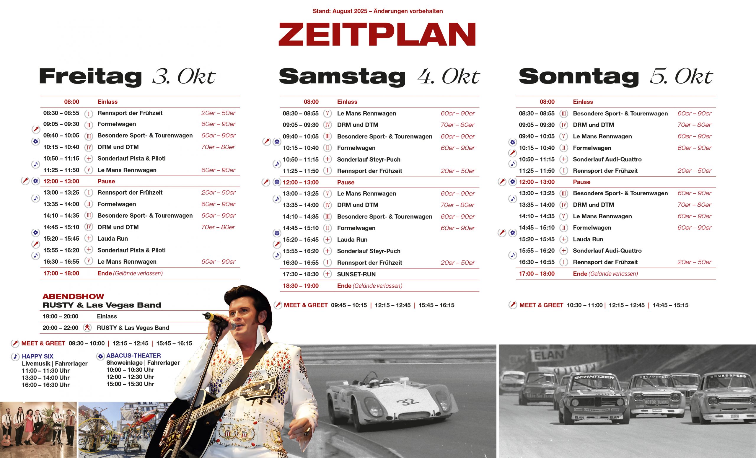 Im Vordergrund stehen die historisch wertvollen Raritäten mit ihrer besonderen Geschichte und einzigartigen Erfolgen, sowie auch ihre Fahrer.